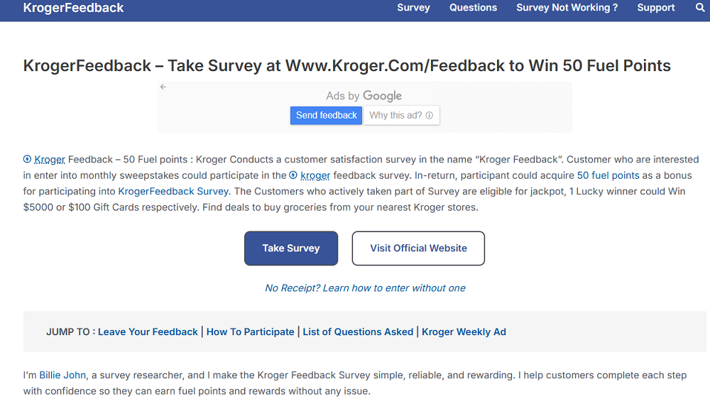 KrogerFeedback – Take Survey at WwwKrogerCom/Feedback to Win 50 Fuel Points