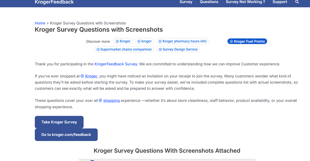 Want to know what questions appear in the Kroger customer satisfaction survey?